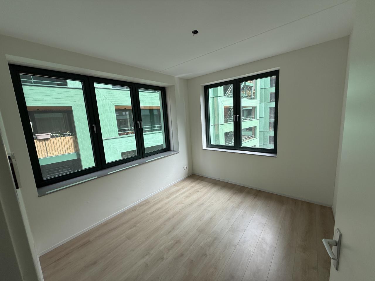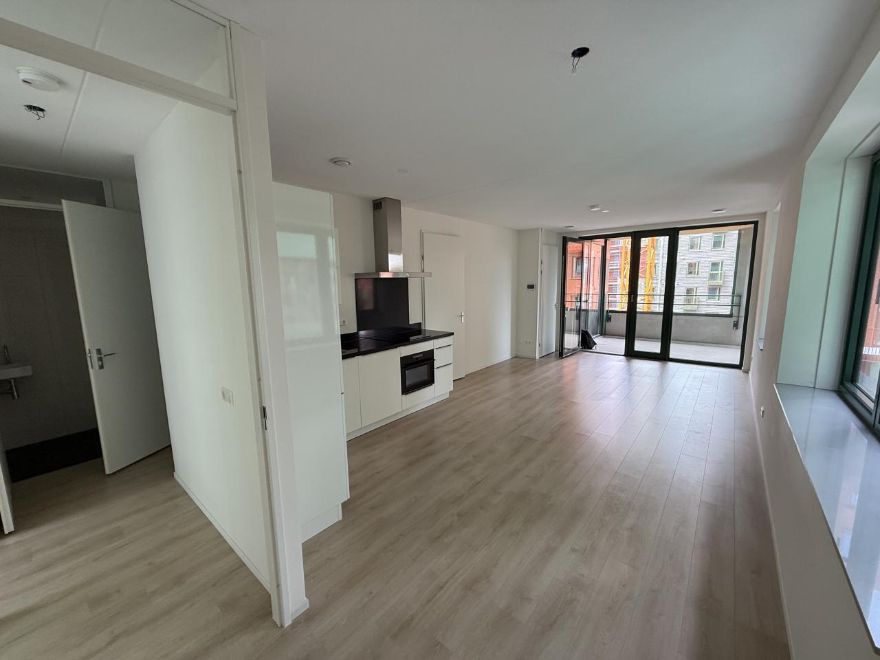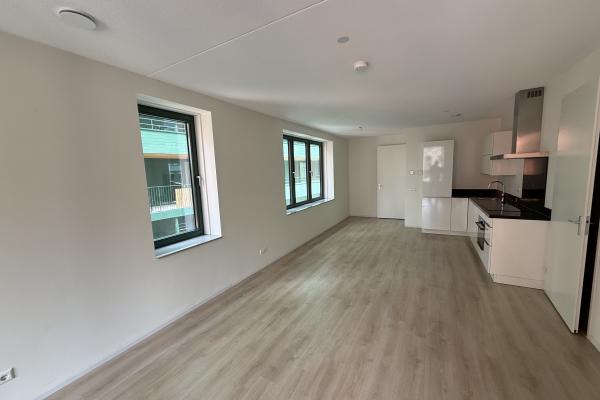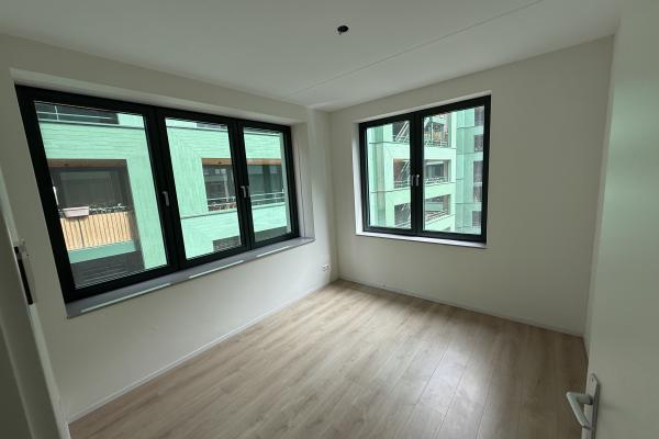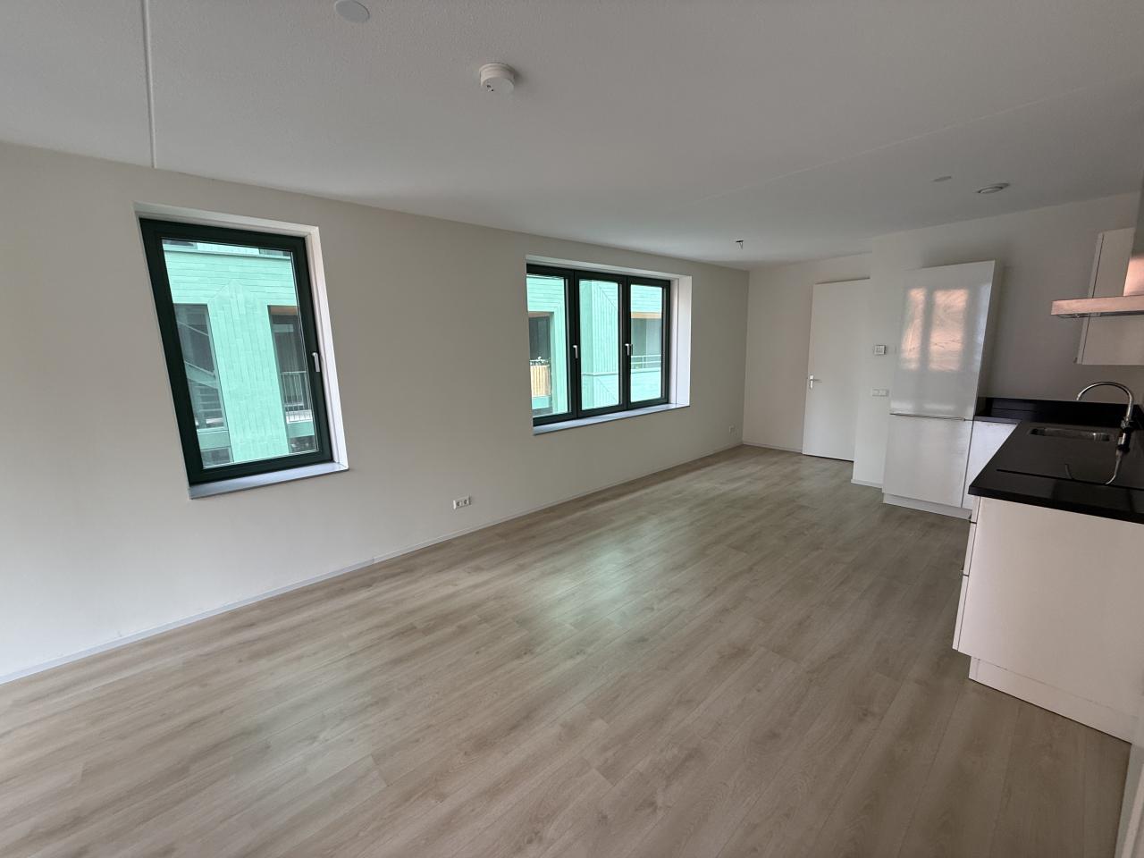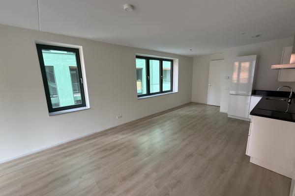 De zorgvuldig ontworpen ruimte van 63,0 m² beschikt over een open indeling, waarin een strakke, moderne keuken naadloos overgaat in de veelzijdige woonkamer. Grote ramen met groene kozijnen laten volop natuurlijk licht binnen en bieden een betoverend uitzicht op het bruisende stadslandschap.