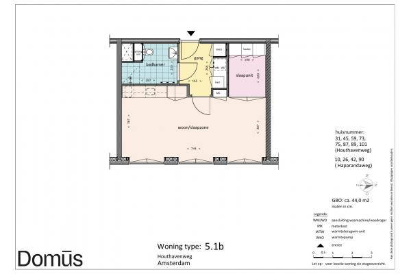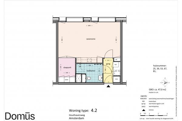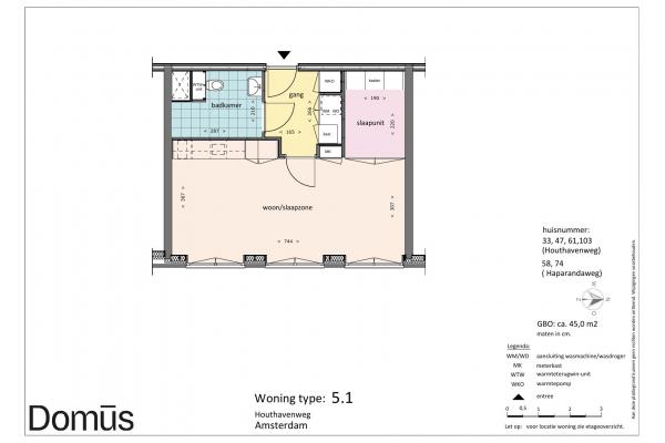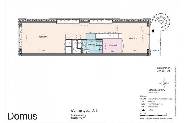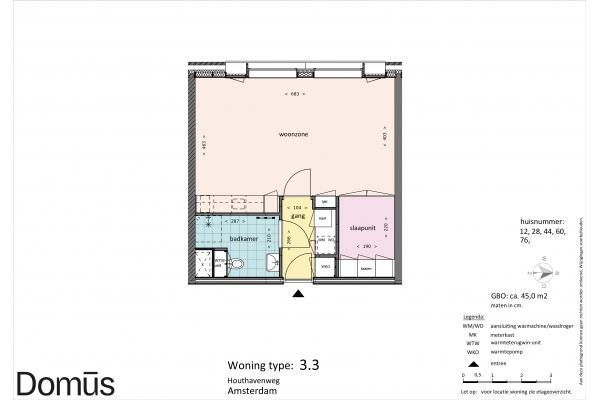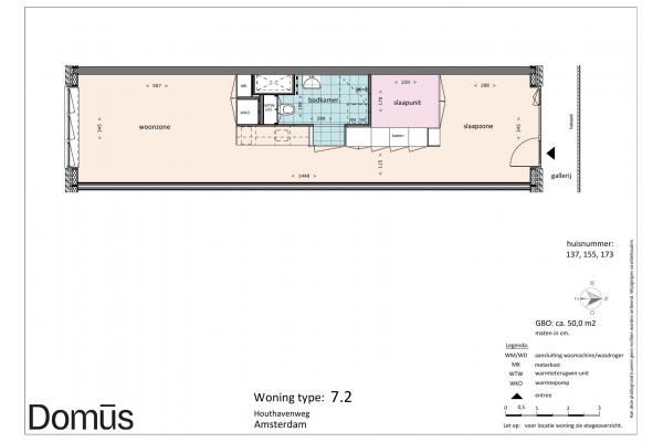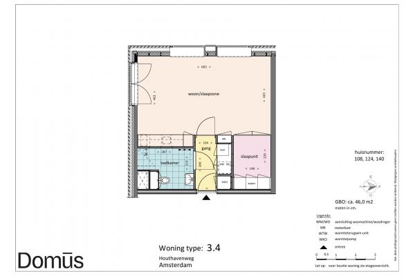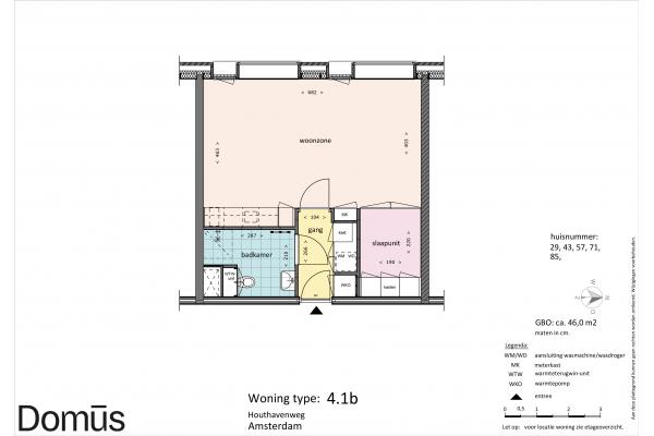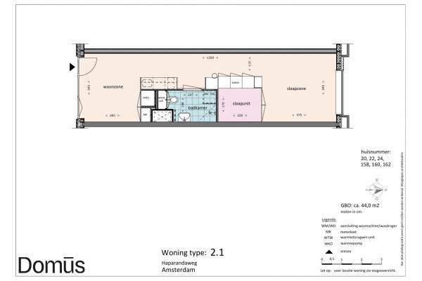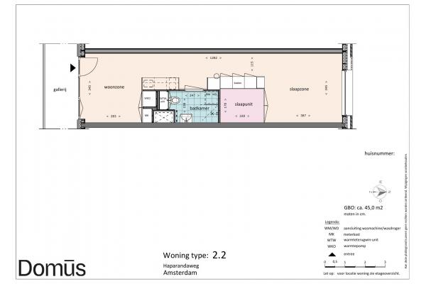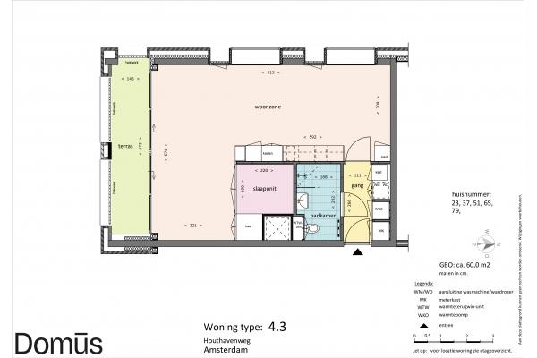 Domūs Houthaven features a diversity of apartments. Ranging from 40 sqm to 60 sqm. All homes feature solid PVC flooring, curtains, and the “smart living core” with kitchen, bathroom, closets, and bed frame. So ready to move in.