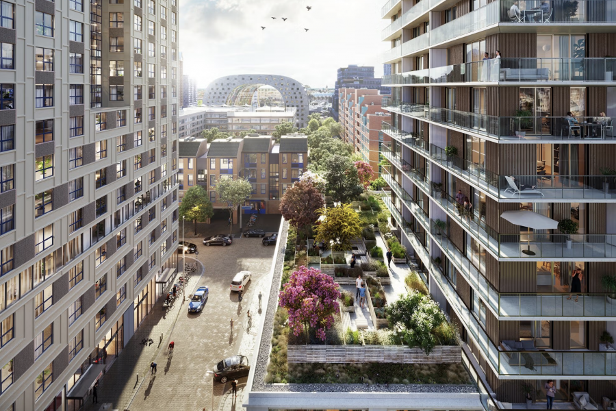 Blaak 333 ademt de geest van de stad: innovatief, open en toekomstgericht. Het ontwerp combineert een krachtige, industriële uitstraling met warme, moderne interieurs. Grote ramen, royale buitenruimtes en lichte materialen zorgen voor een gevoel van ruimte en rust, zelfs in het bruisende stadscentrum. De collectieve daktuin vormt het groene hart van het gebouw, een plek waar bewoners elkaar ontmoeten, ontspannen of juist even tot zichzelf komen met een uitzicht dat nooit verveelt.